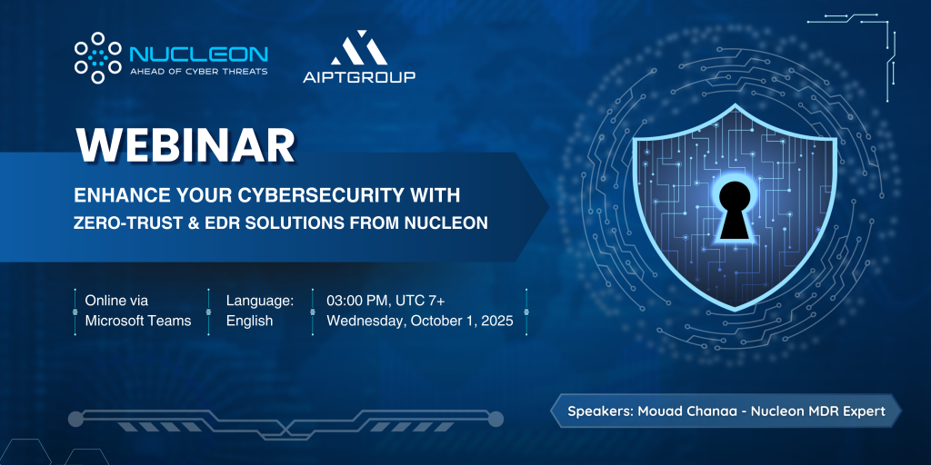 To support businesses in strengthening their security posture, AIPT Group and our strategic partner, Nucleon, cordially invite you to an exclusive webinar to discover a breakthrough cybersecurity solution designed to stay ahead of emerging threats.