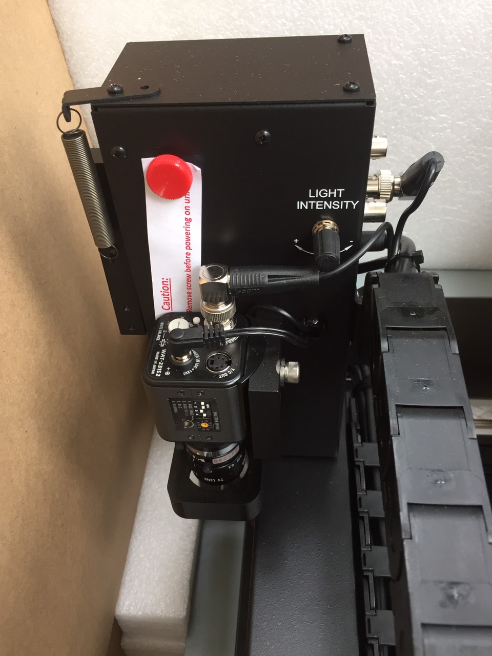 trục Z. Nó điều chỉnh nền màu tự động cho phép điều khiển độ sáng kỹ thuật số trong điều kiện ánh sáng thấp hoặc làm nổi bật độ sáng. Camera này sử dụng một ống kính tiêu chuẩn 25 mm C, Gá lắp ống kính có thể chỉnh tiêu cự và khẩu độ. Các hiệu chỉnh về khẩu độ và tiêu cự khóa vị trí thông qua ốc vít hoặc nút bấm.Camera kim đầu dò có thể điều chỉnh vị trí ống kình bằng việc nới lỏng ốc vít.