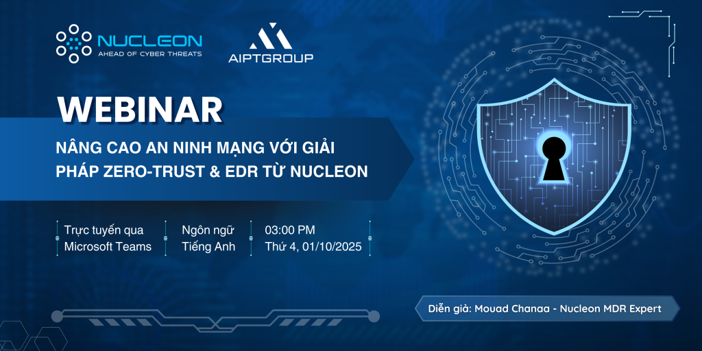 Với mong muốn đồng hành cùng doanh nghiệp Việt Nam trong công cuộc củng cố hàng rào bảo mật, AIPT Group và đối tác chiến lược Nucleon trân trọng kính mời Quý vị tham dự buổi Webinar độc quyền để khám phá giải pháp an ninh mạng đột phá, được thiết kế để đi trước một bước so với các mối đe dọa tiềm tàng.